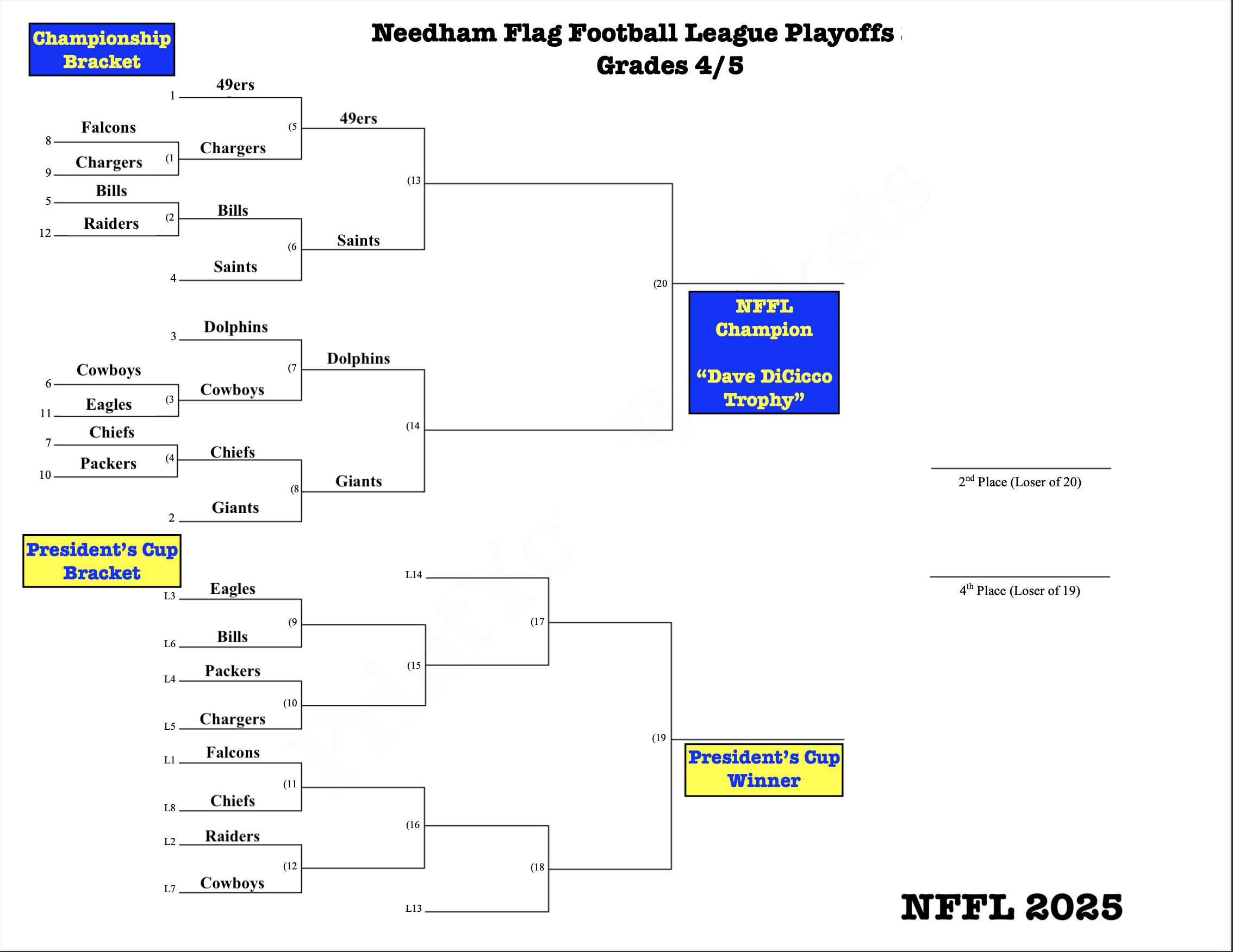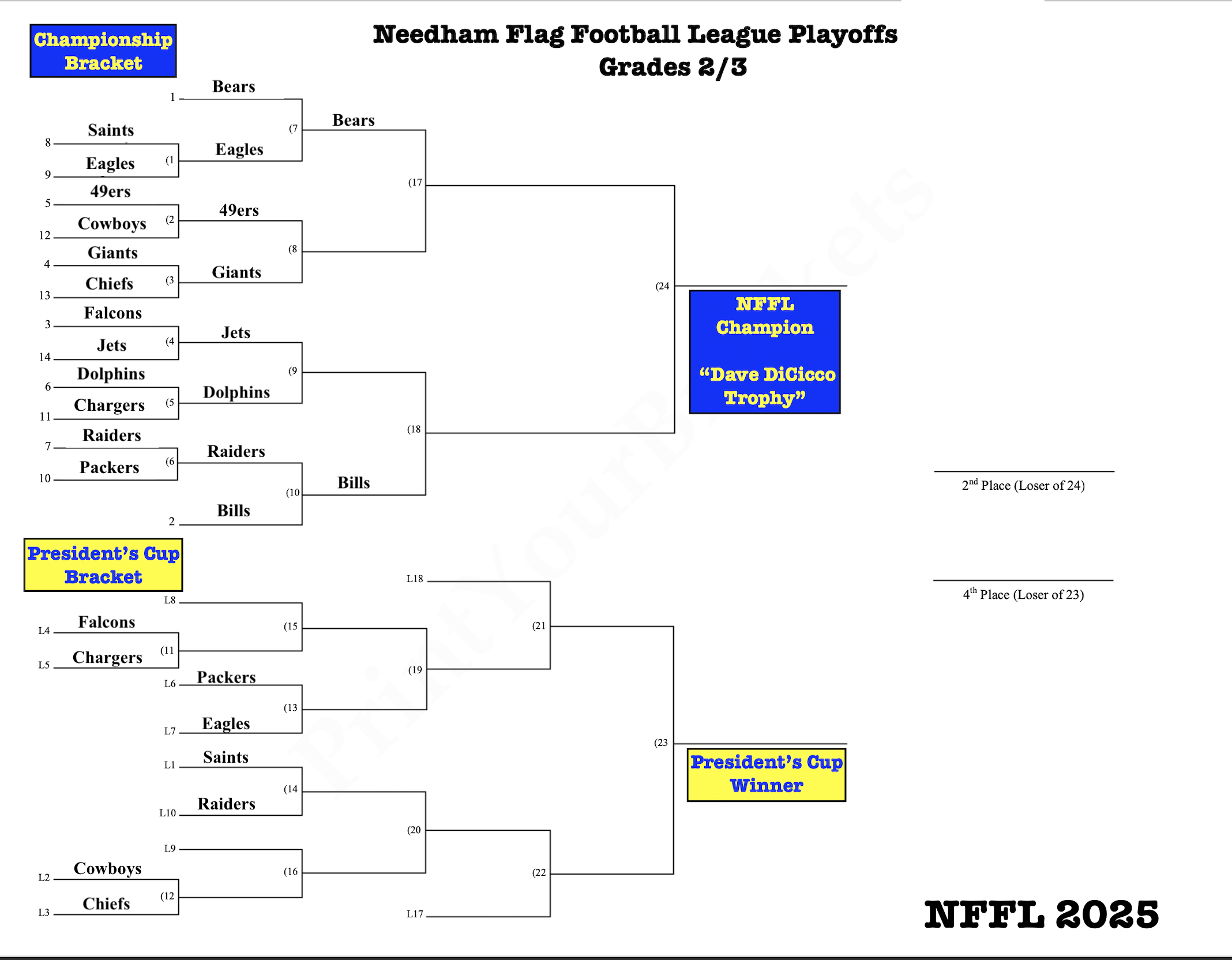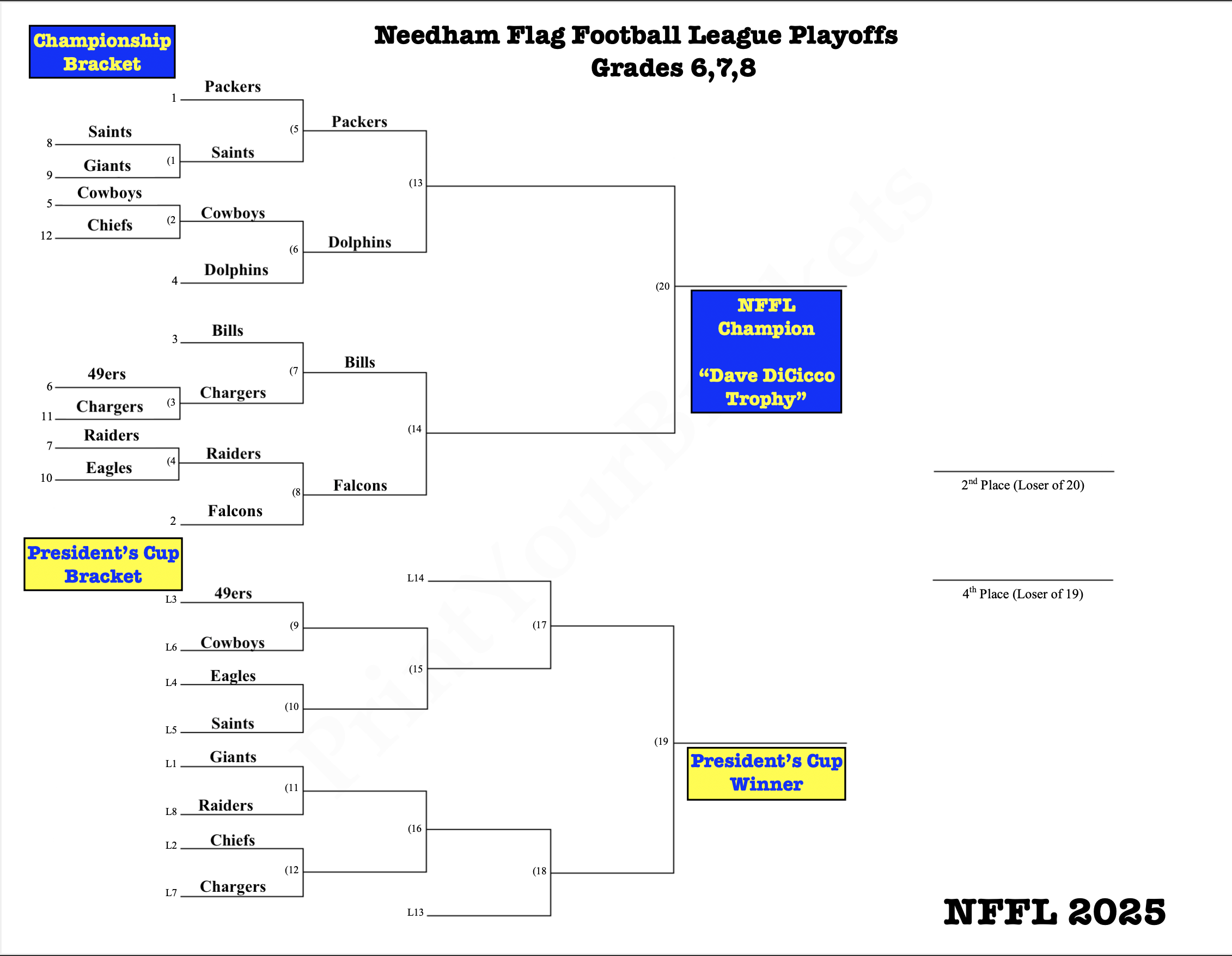 TROPHIES WILL BE GIVEN OUT FOR LEAGUE CHAMPIONS (DiCicco Trophy) and for the PRESIDENTS CUP CHAMPION